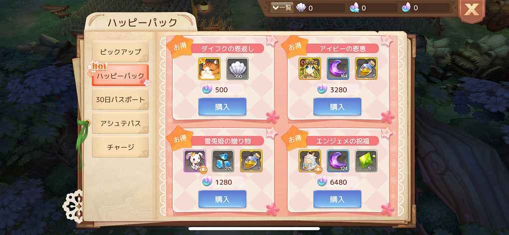 | ダイヤ購入(中量) | 1,000円前後 |