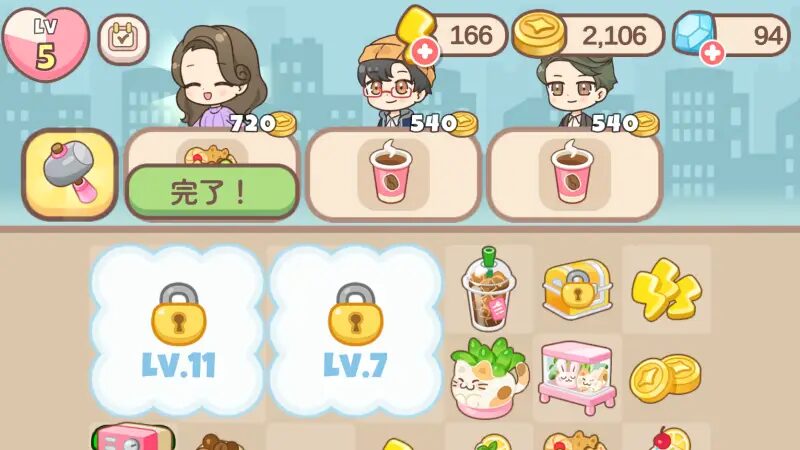 忙しい日でもスキマ時間で少しずつ街を整えるだけで満足感があるのがこのゲームの良さ。