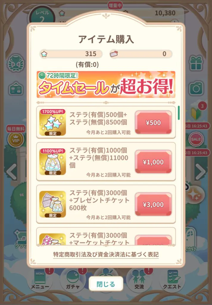 (※価格は記事作成時点のアプリ内表示を基準にした目安)