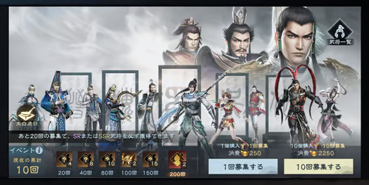 ・武将が揃ってきたら高レア狙いでガチャを回す