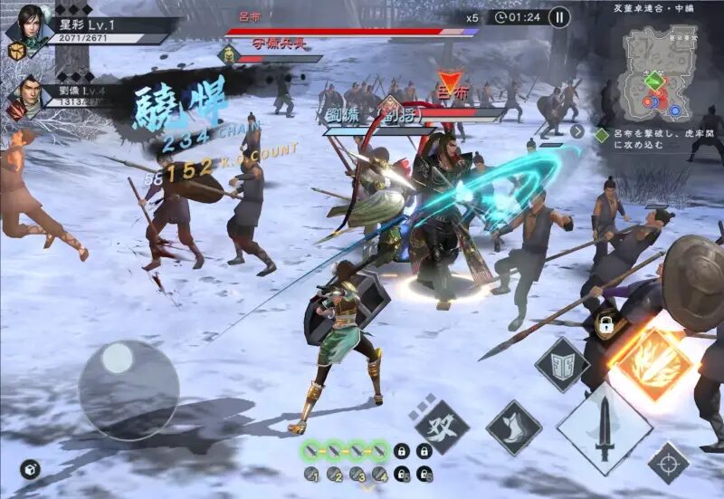 操作がめちゃシンプルなのに爽快感がすごい。無双らしいド派手な動きがスマホでしっかり再現されてて気持ちいい。