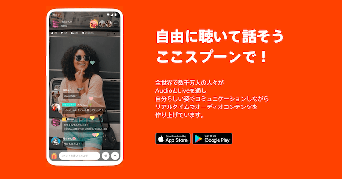 【スプーン】は、声だけで配信したり聴いたりできる音声ライブ配信アプリ。